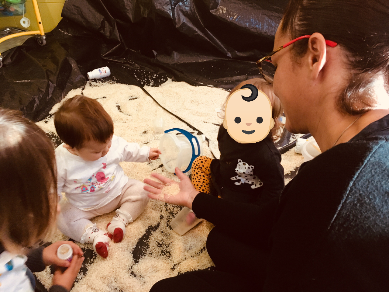 Nous avons une piscine d’intérieure, qui nous sert pour des jeux d’eau ou encore comme « bac à riz ».